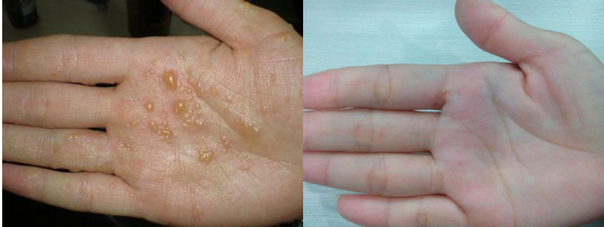 家住深圳市宝安区的张女士,前两天出差回家感觉自己的皮肤病很痒,仔细一看,手上起了很多小水泡,而且很痒,影响到了正常的生活和学习,之后来到了深圳新兴皮肤病专科,专家诊断为汗疱疹,医生采用了“外部采用中药外洗疗”给她治疗一个礼拜,李小姐的病痛解除了,可以轻轻松松上班了。