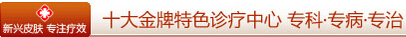 深圳新兴皮肤病专科特别专设十大金牌特色诊疗中心,提升医疗质量、完善医疗服务:白癜风诊疗中心,银屑病诊疗中心,皮炎、湿疹、荨麻疹诊疗中心,变态 反应性等皮肤病诊疗中心, 脱发诊疗中心,痤疮(青春痘)诊疗中心,灰指甲诊疗中心,性病诊疗中心,色素病诊疗中心,皮肤美容中心。
