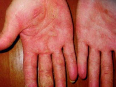 治疗效果:患者手上的皮肤在发病期的皮损、丘疹基本消退,表皮光滑,无抓痕。